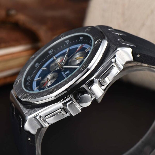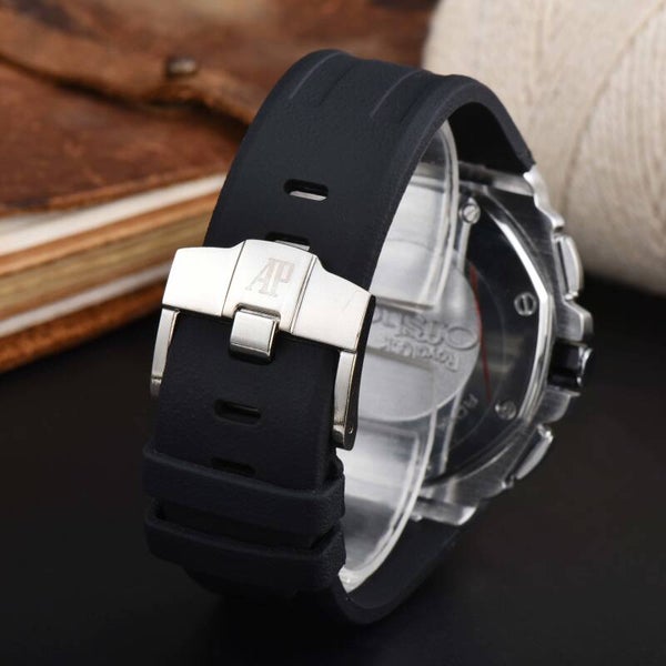 Audemars Piguet Royal Oak Offshore Chronograph "Ghost" watch with a black ceramic bezel, grey dial